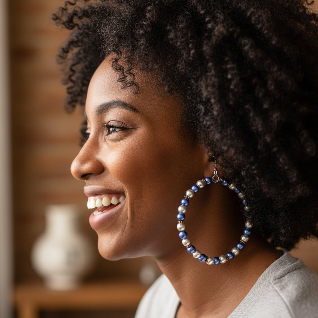 Handmade Aluminum Wire Hoop Earrings – Blue & Silver Beaded Hoops