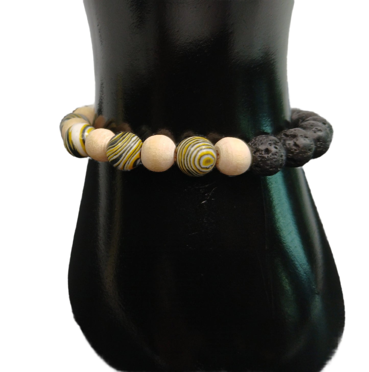 Balance your energy and elevate your style with this Natural Wood and Lava Bracelet, handmade with genuine lava beads, natural wood, and yellow malachite accents. Lava stones are known for their grounding properties and can be used with your favorite essential oils for aromatherapy benefits.