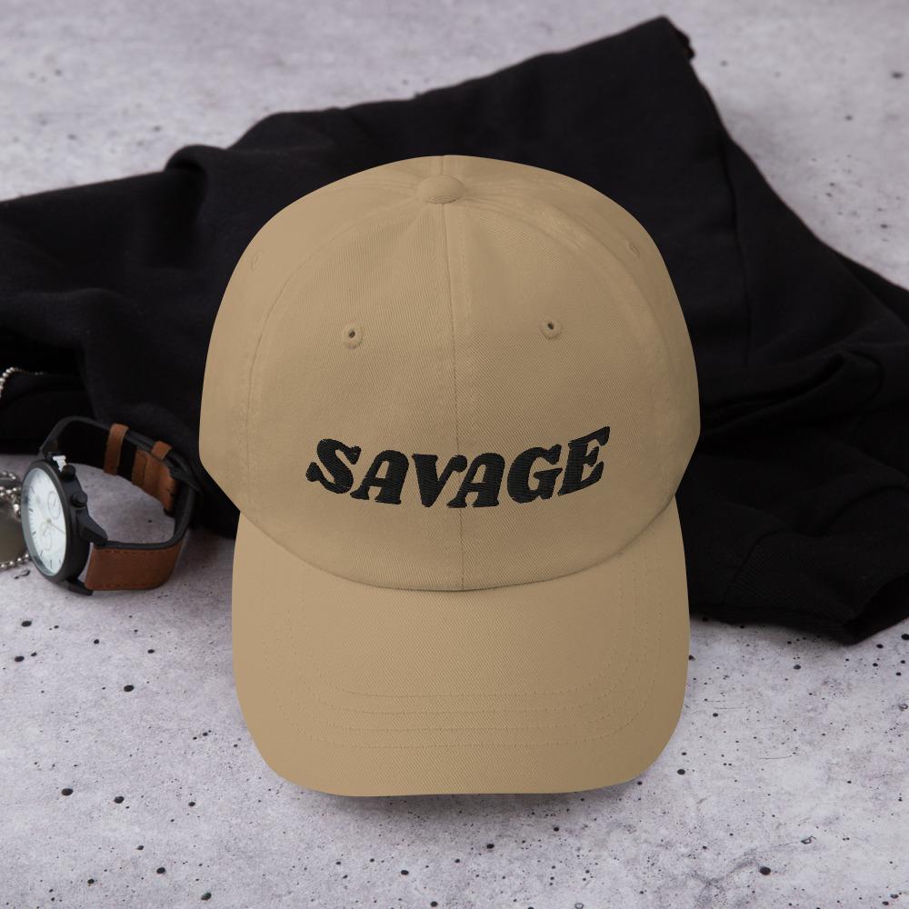 Savage Embroidered Dad Hat – Black Lettering, Comfortable & Unisex