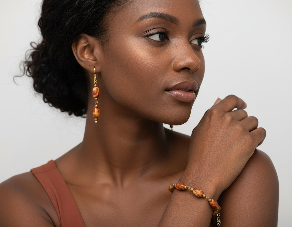 Leopard Print Jewelry Set – Handmade Boho Bracelet & Earrings
