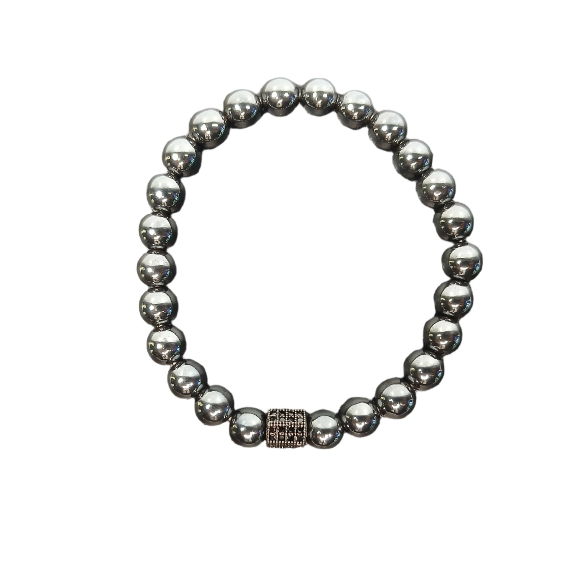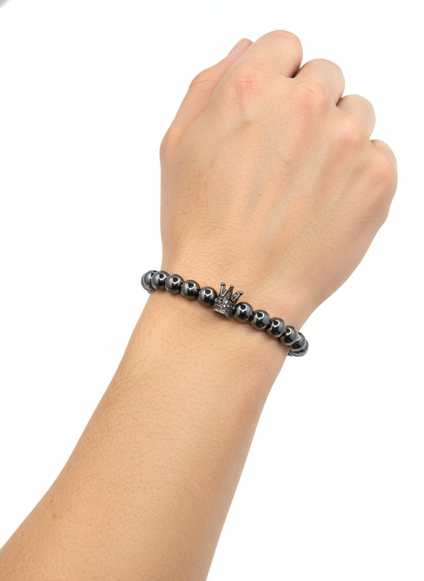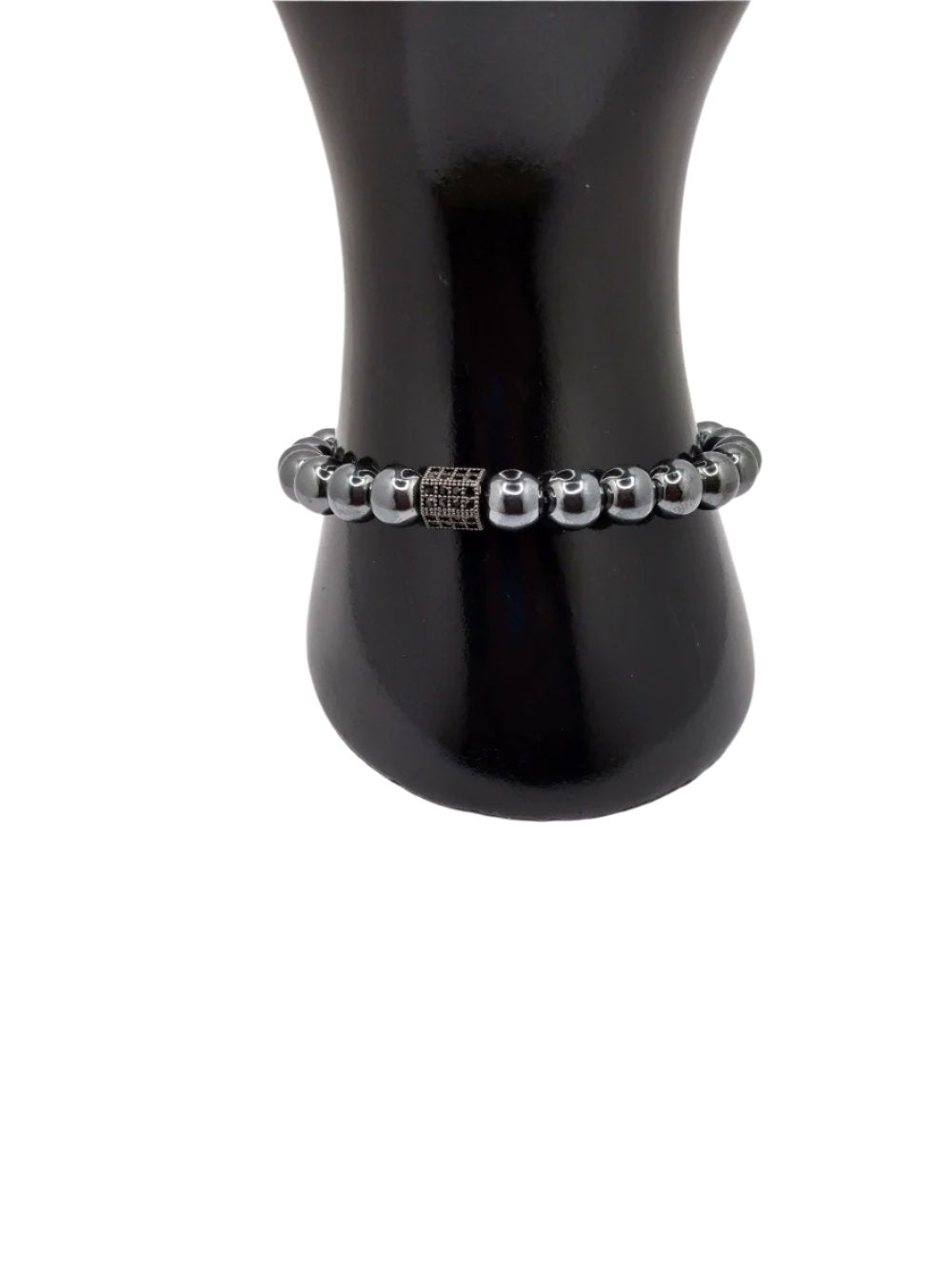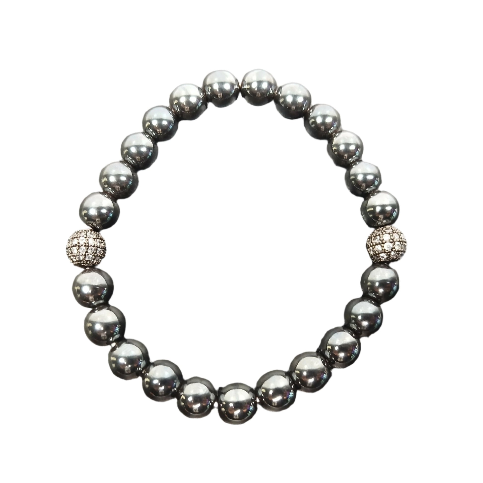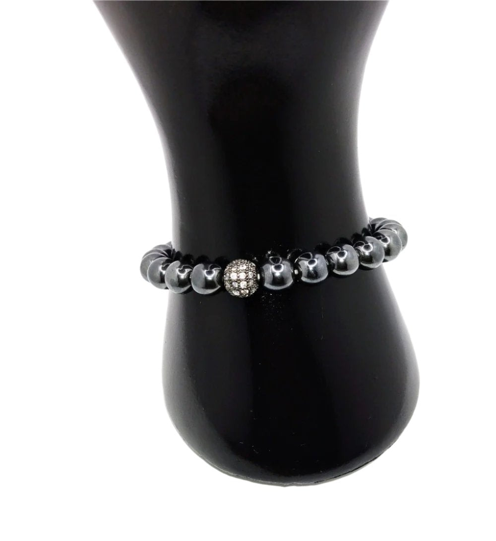 Hematite Healing Bracelet with Zirconia Charms – Handmade Gemstone